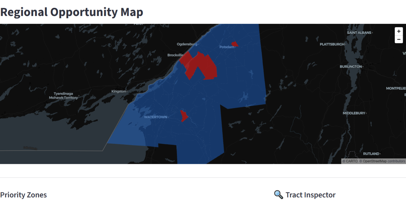 - Cognitive Load Reduction via UI/UX: Designed a “Tract Inspector” and “Regional Opportunity Map” that abstract away complex backend queries, presenting users with clear, interactive visualizations of community assets versus needs.